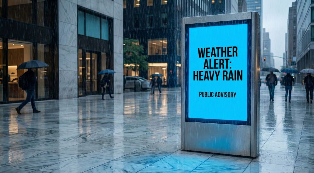 Deliver public service announcements and advertising in any weather. Our IP65-rated outdoor kiosks and bus stop screens are built to withstand rain, dust, and direct sunlight, ensuring your message is visible 24/7 in city centers and public parks.